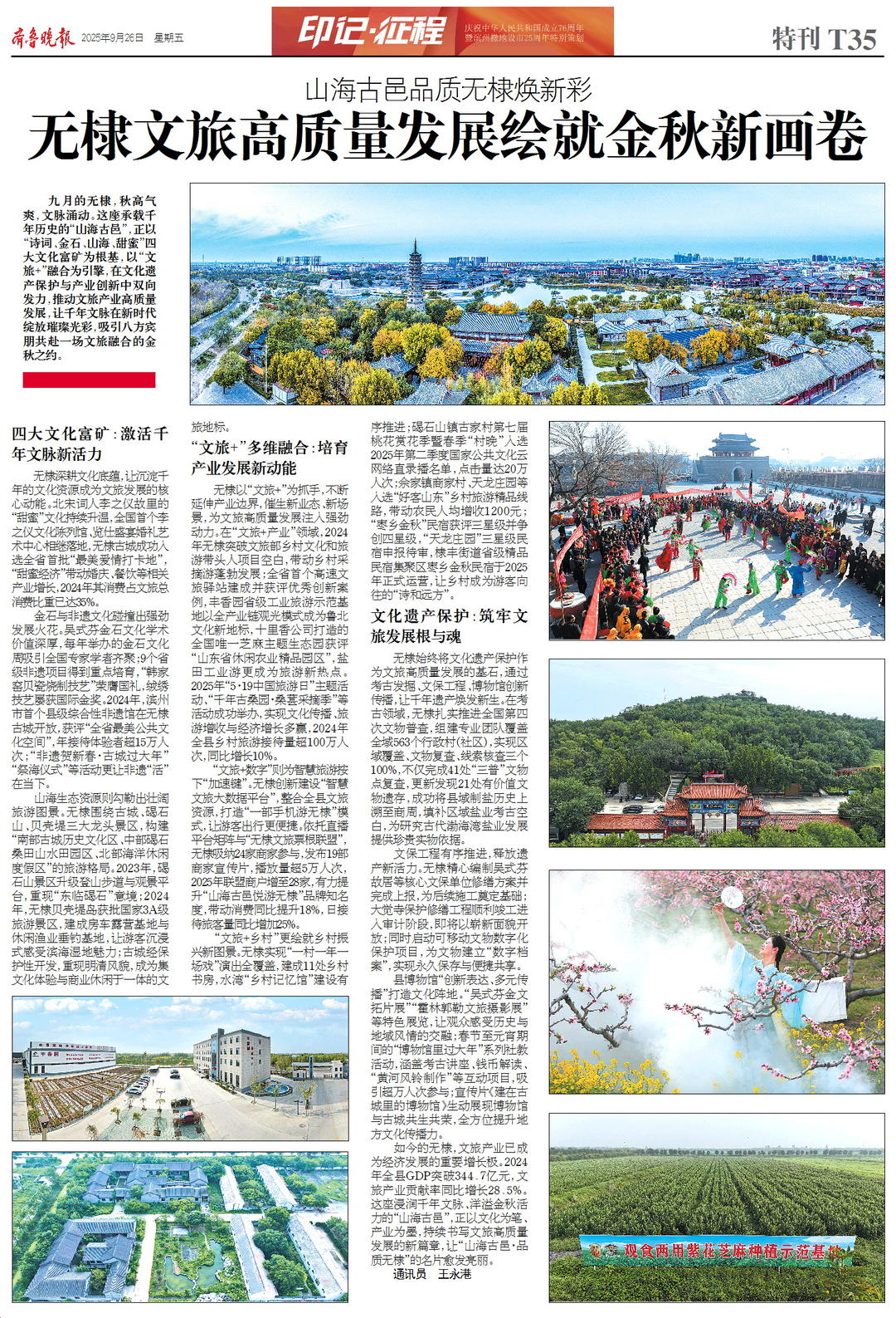 九月的无棣,秋高气爽,文脉涌动。这座承载千年历史的 “山海古邑”,正以 “诗词、金石、山海、甜蜜” 四大文化富矿为根基,以 “文旅 +” 融合为引擎,在文化遗产保护与产业创新中双向发力,推动文旅产业高质量发展,让千年文脉在新时代绽放璀璨光彩,吸引八方宾朋共赴一场文旅融合的金秋之约。